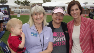 annual "Walk to School Day." She is joined by event chair Michelle Balogh