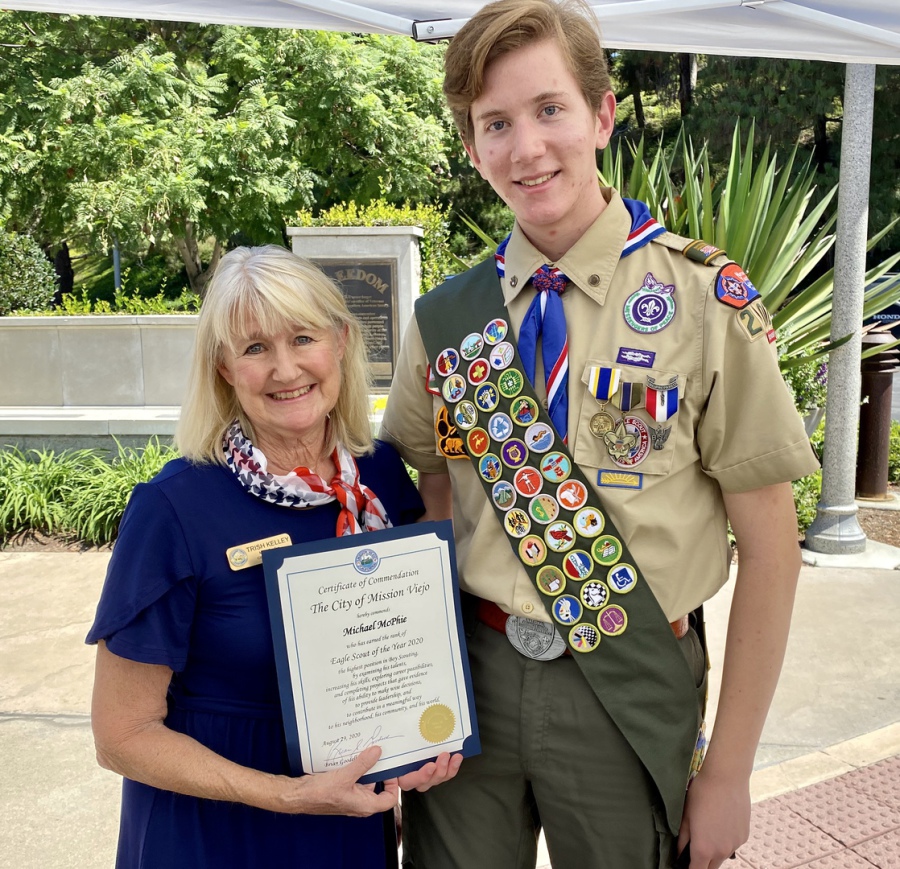 On behalf of Mayor Goodell, Trish presented a Certificate of Commendation from the City of Mission Viejo to